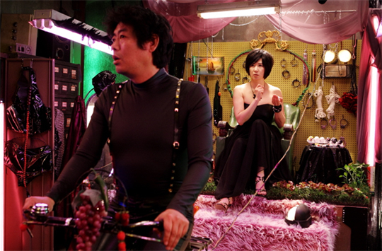 ‘기봉’의 던전에는 특히 ‘순심’에 대한 그의 배려(?!)가 곳곳에 묻어나는데 푸근해 보이는 녹색 소파와, 안락함을 주는 바닥에 깔린 잔디, 그리고 그녀가 원할 때에는 언제든지 꺼낼 수 있도록 배치해 놓은 가죽 팔찌와 크고 작은 사이즈의 다양한 채찍들은 이 곳의 진정한 주인이 누구인지를 짐작케한다. 하지만 무엇보다 던전의 하이라이트는 바로 ‘순심’이 그들의 性스러운 공간을 내려다 볼 수 있도록 만들어진 왕비좌(?) 앞에 설치된 ‘기봉’의 자전거이다.
