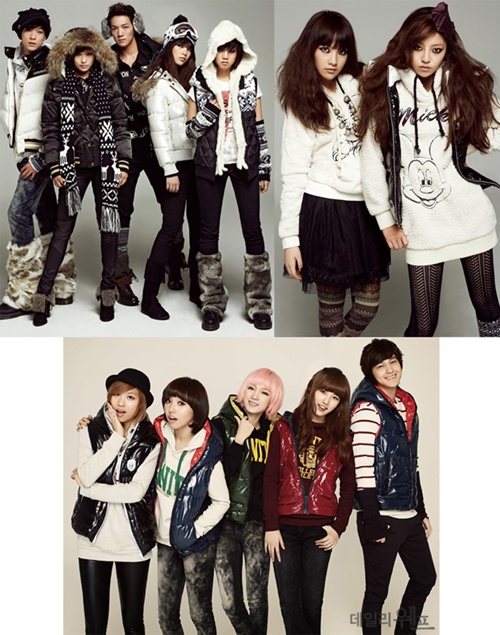 ▲가요계 여신 카라와 미스에이가 선택한 패딩베스트- 애스크(ASK), 에드윈(EDWIN)