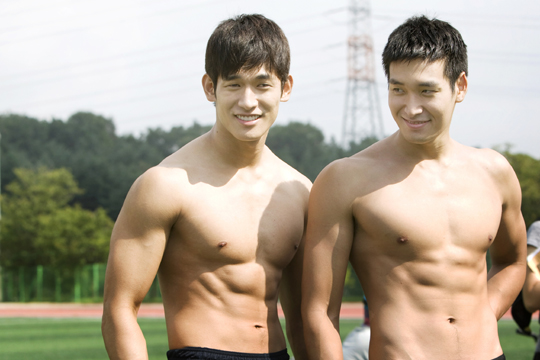 탄탄한 몸매를 자랑하는 두 남자 배우가 여심을 흔들고 있다.