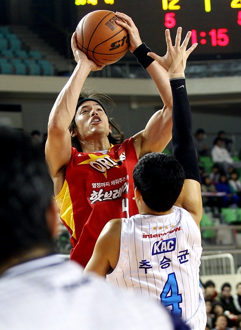 오리온스 이동준이 하승진이 빠진 KCC의 골밑을 유린하며 팀을 연패서 구해냈다.