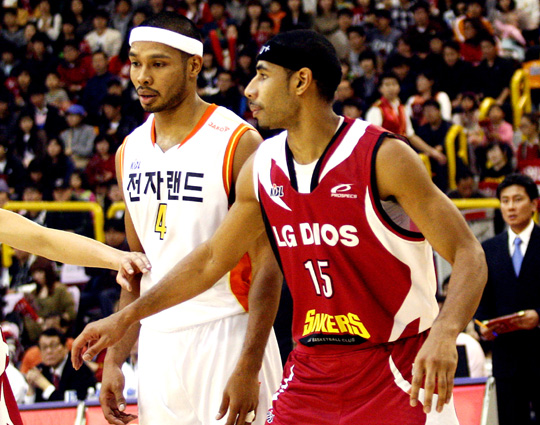 31일 창원실내체육관에서 열린 창원 LG와 인천 전자랜드의 시즌 첫 경기는 문씨 형제들의 첫 맞대결로 뜨거운 관심을 모았다. LG 문태영(32·193cm)이 지난 시즌 득점왕(21.9점)에 오르며 센세이션을 일으킨 데 이어 그의 친형 문태종(35·197cm)이 올 시즌 그에 못지않은 바람을 일으키고 있다. 그동안 뛰는 리그가 달라 프로 무대에서 맞붙은 적이 없었던 두 형제가 이날 마침내 적으로 마주하게 된 것이다.