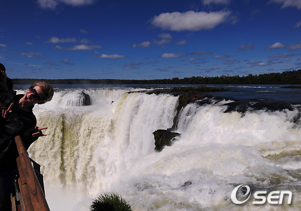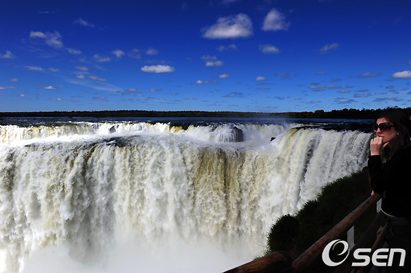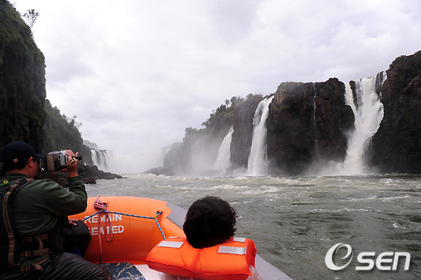 떨어지는 이구아수 폭포의 물줄기를 몸으로 받는건 어떨까?