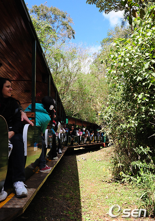 아르헨티나에서 '악마의 목구멍'을 구경하기 위해서는 미니 트레인을 타고 15분 그리고 내려서 강위에 놓여진 다리를 10여분 정도 걸어야 한다. 미니 트레인을 타고 가는 관광객의 모습이 잠시 후 마주칠 엄청난 광경을 상상하듯 들떠 보인다.