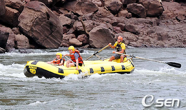 '마코쿠 사파리'를 하다보면 거센 물살을 헤치고 내려오는 래프팅족을 만날 수 있다.