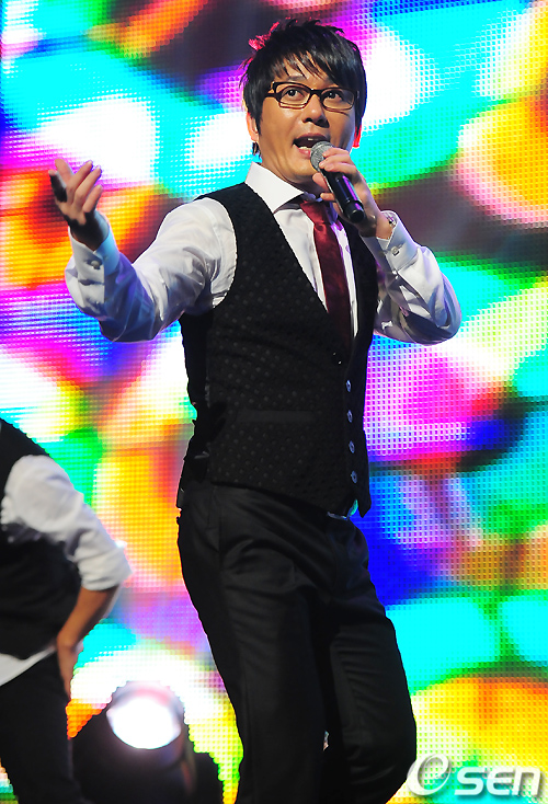 무대 위에서 신승훈이 무대 위에서 열창을 하며 화려한 안무를 선보이고 있다. /rumi@osen.co.kr