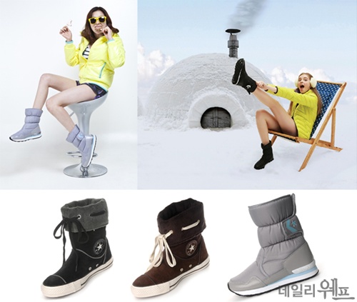 스트리트 스포츠 캐주얼 브랜드 컨버스(Converse)의 기본 스니커즈 디자인에 접목한 윈터 부츠는 패션성과 보온성을 모두 만족시켜 벌써부터 패션피플들의 잇 슈즈로 점 찍혔다. 컨버스의 오리지널리티를 간직한 스웨이드소재의 롤 다운부츠와 패딩소재의 패딩부츠가 그 주인공.