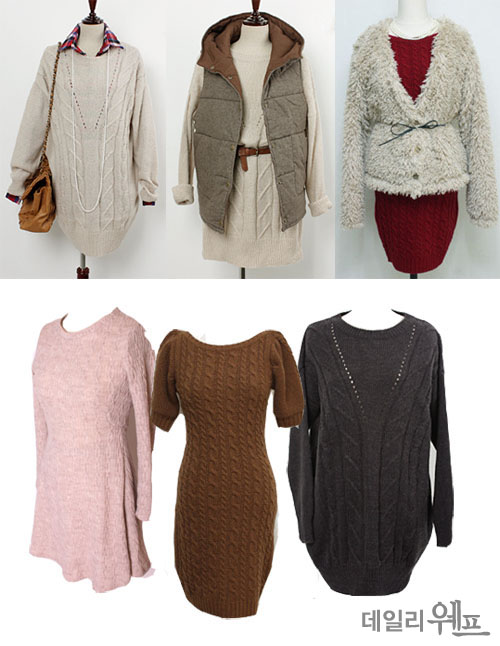 이 뿐만 아니라 꽈배기 디테일의 니트 원피스도 지금입기에 딱 좋은 아이템이다. 원피스위에 슬림한 벨트로 포인트를 주고 레깅스와 함께 매치하면 걸리시한 분위기를 연출할 수 있다.