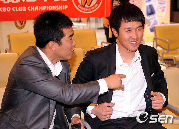 SK 정근우와 최정이 이야기를 나누고 있다. /soul1014@osen.co.kr