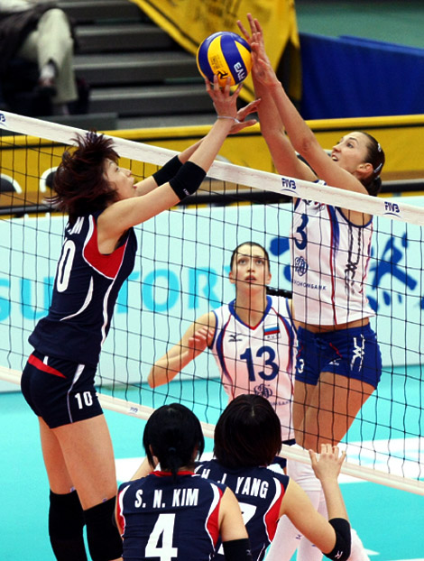 박삼용 감독이 이끄는 여자 배구 대표팀이 2일 일본 오사카 시민체육관에서 열린 2010 세계 여자 배구선수권 D조 4차전에서 러시아에게 세트스코어 1-3(18-25 17-25 25-19 22-25)으로 패했다.