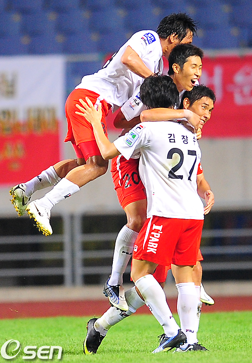 부산은 전북이 선수 교체로 어수선한 틈을 놓치지 않았다. 후반 7분 코너킥 찬스에서 정성훈이 선제골을 터트린 것. 코너킥이 전북 수비에 맞고 흘러 나온 것을 박스 중앙에 있던 정성훈이 왼발 슈팅으로 골망을 멋지게 갈랐다.