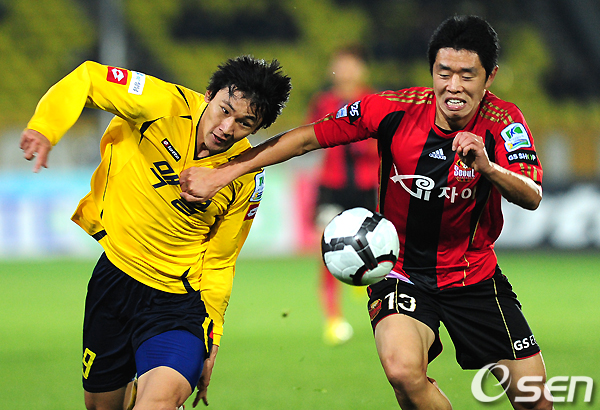 전반 성남 조동건과 서울 현영민이 몸싸움을 하며 볼을 다투고 있다. /jpnews@osen.co.kr