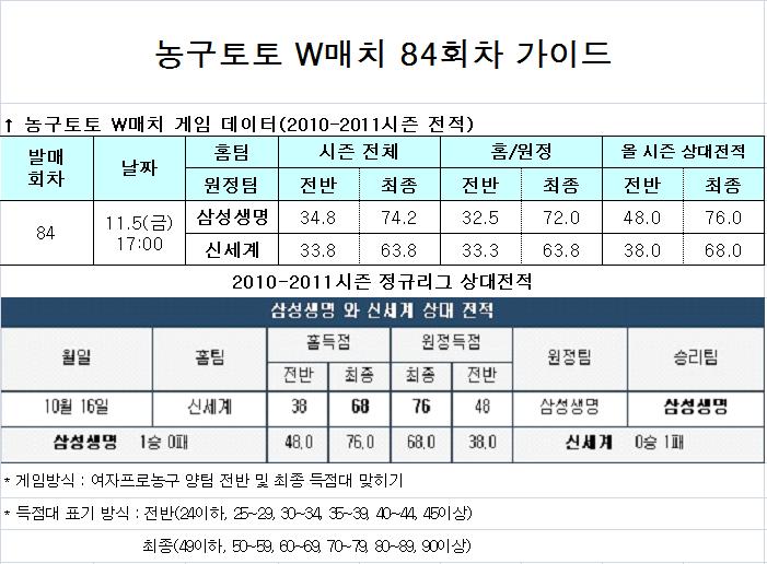 한편 이번 농구토토 W매치 84회차 게임은 경기시작 10분 전인 5일 오후 4시 50분에 발매가 마감된다.