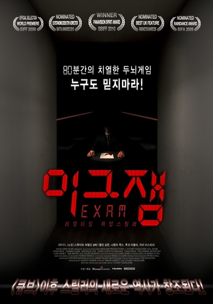 11월11일 개봉을 앞두고 있는 세계최초 본격 리얼타임 취업스릴러‘이그잼’이 홍역을 앓고 있다. 취업스릴러 ‘이그잼’은 새로운 장르와 독특한 소재로 네티즌들의 관심은 폭발적이지만 ‘이그잼’ 관계자들의 표정은 그리 밝지 못하다. 그 이유는 바로 불법 다운로드 때문.