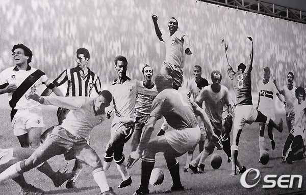 펠레 등 브라질 축구를 빛낸 선수들의 흑백사진이 마라카낭 외벽에 걸려 있다. /spjj@osen.co.kr 취재협조 카타르 항공