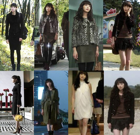 극의 초반, 화려한 해외로케에 걸맞게 드레시하고 여성스러운 원피스로 럭셔리함을 강조했던 ‘진이 룩’은 한국 촬영 분으로 넘어 오면서 한층 시크하고 활동적인 트렌치코트, 가죽 재킷, 부츠 등을 매치하며 트렌디하고 도시적인 스타일로 변신했다.