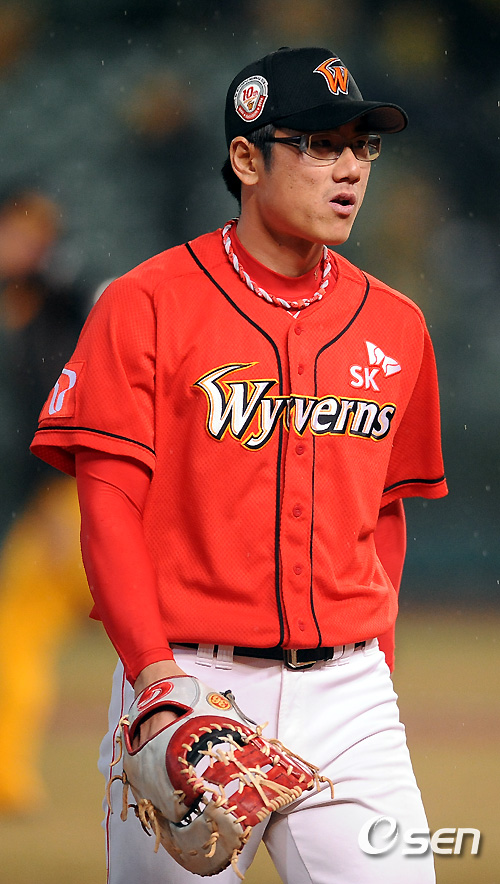 9회말 1사 1, 2루 슝디 왕셩웨이에게 페어볼을 허용한 SK 박정권 3루수가 경기 종료 후 아쉬운 표정으로 덕아웃으로 들어오고 있다. /soul1014@osen.co.kr