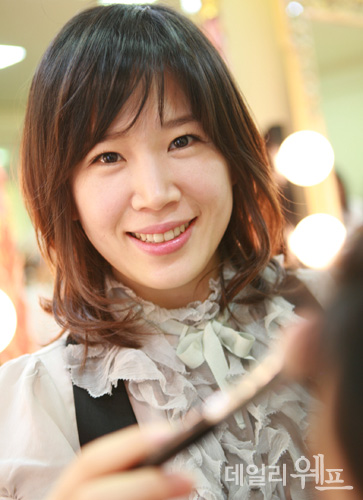 어려보이는 피부표현을 위해 피부를 한톤 밝혀준다. 피부에 따라 어울리는 밝은 톤의 차이를 잘 잡아내는 것이 바로 아티스트의 역할이다.