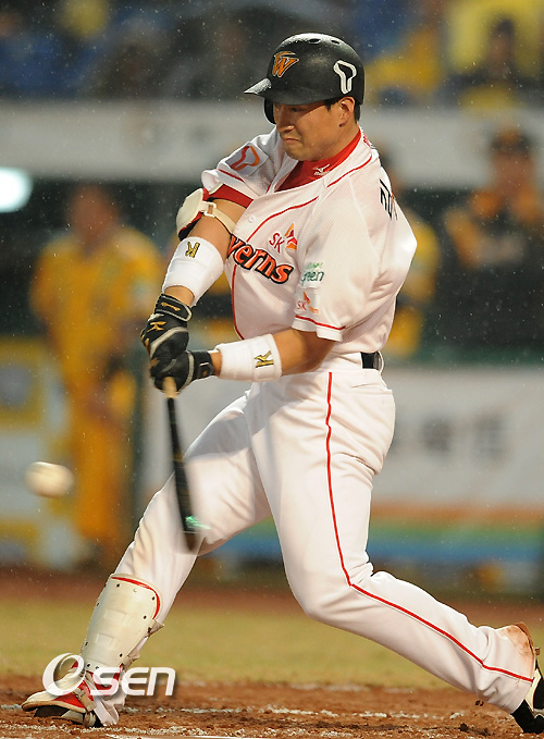 SK 6회말 1사 2루 김재현이 1,2루 간을 빠지는 적시타를 치고 있다. /soul1014@osen.co.kr