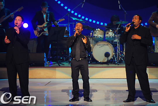 무대 위에서 올포원 (ALL 4 ONE)이 열창을 하고 있다./rumi@osen.co.kr