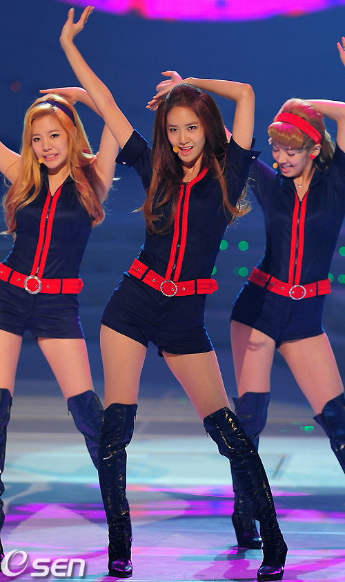 무대 위에서 소녀시대가 노래 '훗'을 부르며 화려한 안무를 선보이고 있다./rumi@osen.co.kr