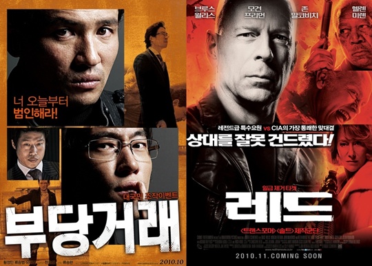 ‘부당거래’의 뒤를 이어 브루스 윌리스 주연의 ‘레드’가 뒤를 이었다. 이날 하루 동안 9만 3404명을 동원한 ‘레드’는 ‘부당거래’에 비해 두 배 넘는 격차로 뒤졌지만, 개봉하자마자 박스오피스 2위를 달리던 수애 유지태 주연의 ‘심야의 FM’을 앞질렀다.