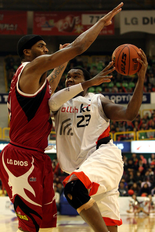 KT는 외국인선수 찰스 로드(14점)·박성운(10점)·윤여권(24점)·양우섭(2점) 등 벤치멤버들이 경기를 풀어나갔다. 1쿼터 막판 로드의 활약으로 20-18로 추격하는데 성공했다. 그러나 2쿼터에서 LG는 강대협(10점)이 투입되자마자 3점슛 2개 포함 8점을 몰아넣으며 다시 분위기를 가져왔다. 문태영도 2쿼터에만 11점을 집중시켰다. 2쿼터 막판 문태영이 버저비터까지 성공시키면서 LG는 48-35로 전반 리드를 잡았다.