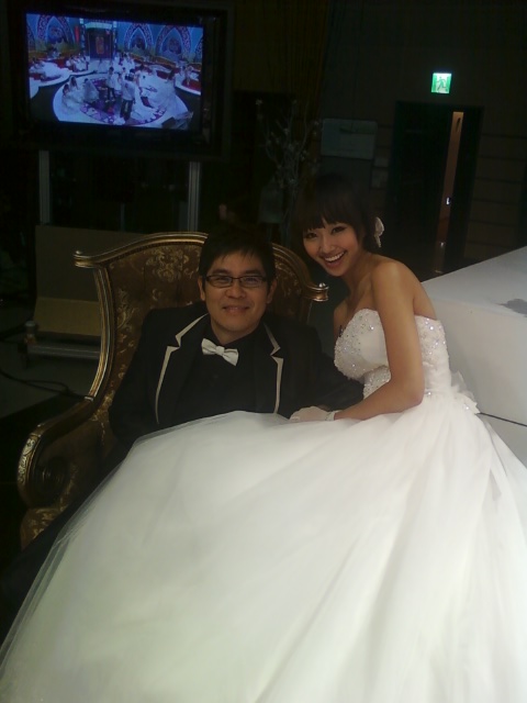효린은 지난 2일 진행된 MBC '꽃다발' 녹화에서 다른 걸그룹 출연진들과 함께 웨딩드레스 촬영에 임한 가운데, MC인 김용만과 웨딩촬영 컨셉의 사진을 찍어 트위터에 올렸다.