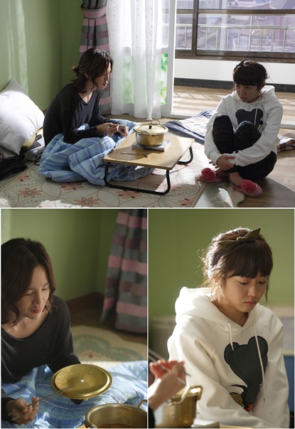 스틸컷 속의 무결은 냄비뚜껑을 들고 기대감에 찬 모습. 매리는 뭔가 잔득 골이 난 표정이다.