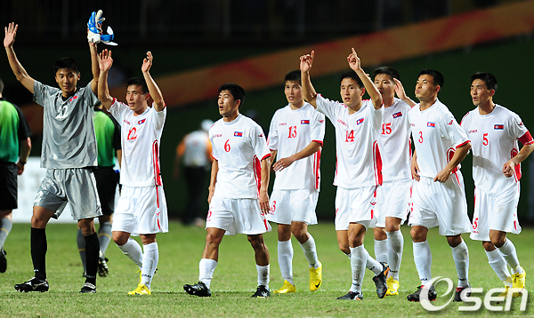 경기후 북한 선수들이 승리를 기뻐하고 있다. /jpnews@osen.co.kr
