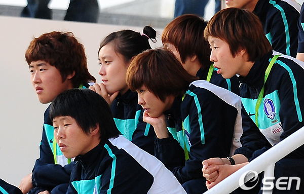 후반 여자대표팀 지소연을 비롯한 선수들이 경기를 바라보고 있다. /jpnews@osen.co.kr