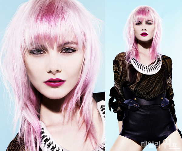 THE COLOR : 다소 과한 파스텔 색조로 유쾌하고 활기찬, 솜사탕 같은 느낌으로 표현. 다이아몬드 형태의 섹션 패턴을 이용하여 언더부분과 사이드 부분에 사용. 얼굴 쪽의 헤어라인은 '실버 스노우' 컬러, 앞머리 부분은 '메탈릭 로즈' 컬러를 이용.