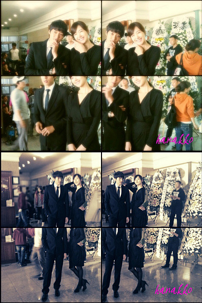 '글로리아' 촬영장을 배경으로 검은 정장을 입고 있는 두 사람은 자못 심각한 표정으로 재미있는 포즈를 취하고 있어 웃음을 자아내며 또 다른 사진에서는 다정히 얼굴을 맞대고 활짝 웃고 있다.