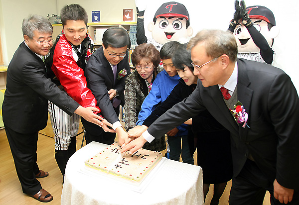 ‘희망 가득한 도서관 만들기’는 LG화학이 지난 2007년부터 추진하고 있는 사회공헌 프로그램으로서 미래의 주역인 청소년들에게 책 읽는 문화를 전하는 동시에 문화공간이 절대적으로 부족한 지역 주민들에게 소중한 문화시설을 제공하며 좋은 반응을 얻고 있다. /사진제공 LG 트윈스
