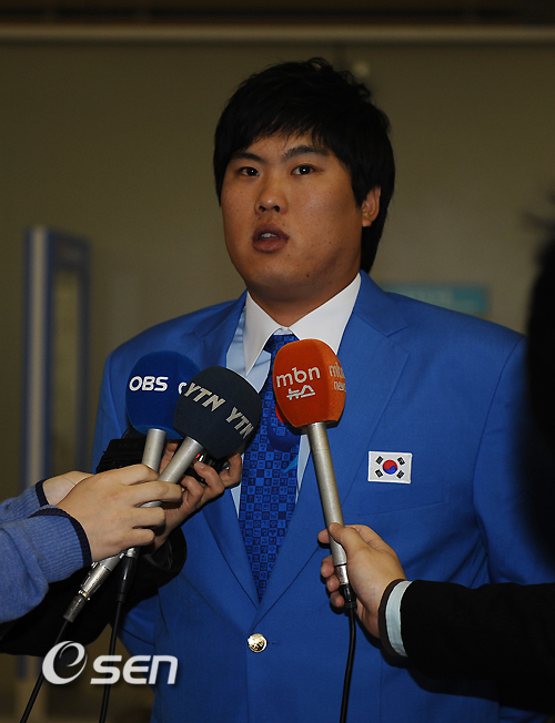 출국에 앞서 류현진이 인터뷰를 하고 있다./ ajyoung@osen.co.kr