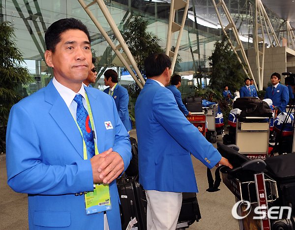 대표팀은 10일 오전 8시 50분 인천공항에서 광저우행 비행기에 올라 현지 시각 11시 30분 경 광저우 땅을 밟았다. 1시간의 시차를 고려하면 약 4시간에 가까운 비행 소요 시간. 선수들은 피곤한 가운데서도 금메달을 향한 각오를 다졌다.