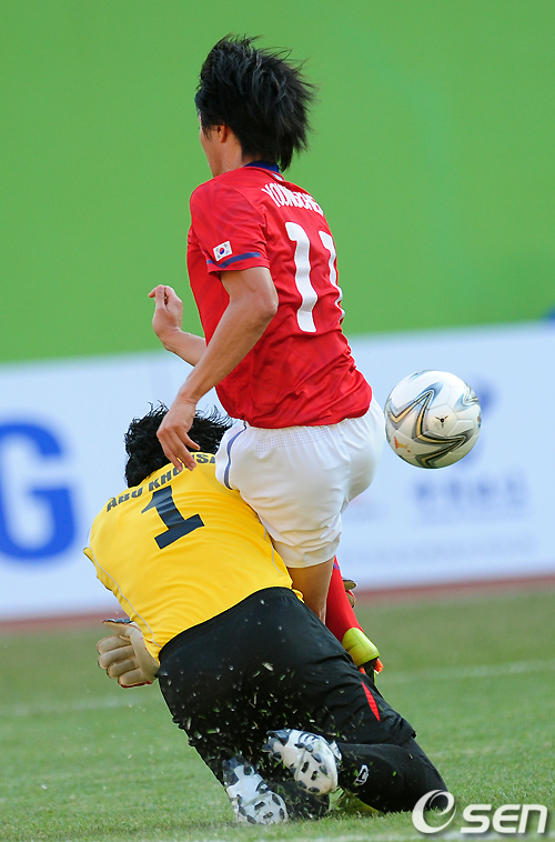 광저우 아시안게임 축구 C조 예선 2차전 한국-요르단의 경기가 10일 웨슈산 축구장에서 벌어졌다.