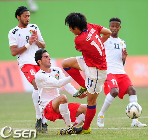 광저우 아시안게임 축구 C조 예선 2차전 한국-요르단의 경기가 10일 웨슈산 축구장에서 벌어졌다.
