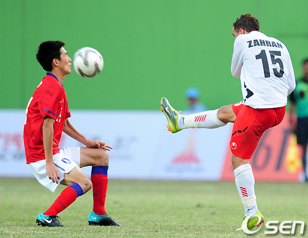 후반 한국 김정우가 요르단 수비수가 걷어낸 볼에 깜짝 놀라고 있다. /jpnews@osen.co.kr