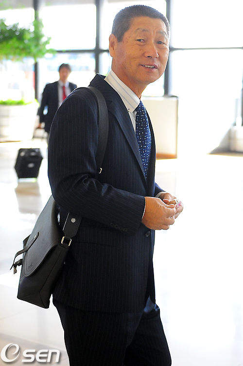 김 감독은 깔끔한 검은색 정장 차림에 하얀 하얀 와이셔츠를 입고 캐주얼한 가방을 메고 승리를 자신한 듯한 표정을 지으며 비행기에 올랐다. /rumi@osen.co.kr