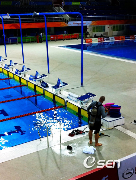 그러나 다이버의 정체는 곧 밝혀졌다. 바로 이번 대회에서 박태환과 장린, 쑨양 등 쟁쟁한 수영 스타들의 헤엄을 생생히 전달하려는 광저우 아시안게임 브로드캐스팅(GAB)의 직원이었던 것.