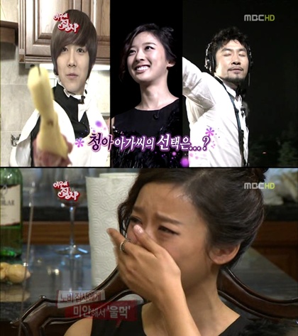 MBC '여우의집사'에서 예능프로그램에 첫 고정으로 출연하게 된 배우 이청아가 노홍철과 이홍기 사이에서 집사선택을 고민하다 결국 눈물을 보여 눈길을 끌었다.