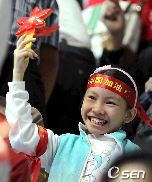 한국은 알파벳 순서에 따라 16번째로 입장했다. 중국소녀가 머리띠를 하고 식전행사를 관전하고 있다. /ajyoung@osen.co.kr