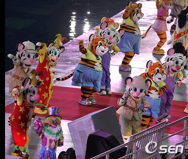 호랑이 마스코트들이 응원을 유도하고 있다. /ajyoung@osen.co.kr