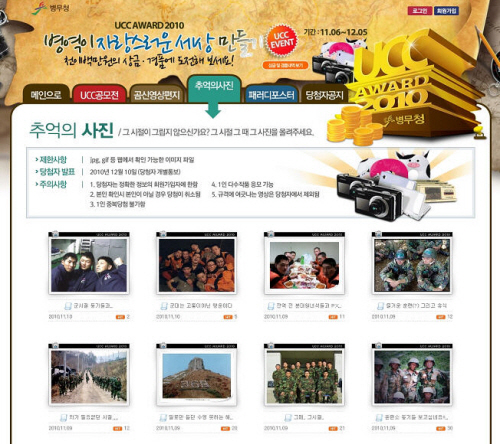 이에 병무청은(청장 김영후)은 병역의무 이행을 명예롭고 자랑스럽게 여기는 사회분위기 조성을 위하여 국민들이 직접 참여하는 ‘병역이 자랑스러운 세상만들기 UCC 공모전’을 지난 11월 6일부터 오는 12월 5일까지 진행한다.