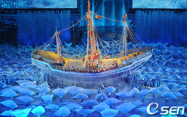 항구도시인 광저우에서 열리는 제16회 광저우아시안게임 개막식은 ‘물, 생명의 기원’이라는 주제로 펼쳐졌다.
