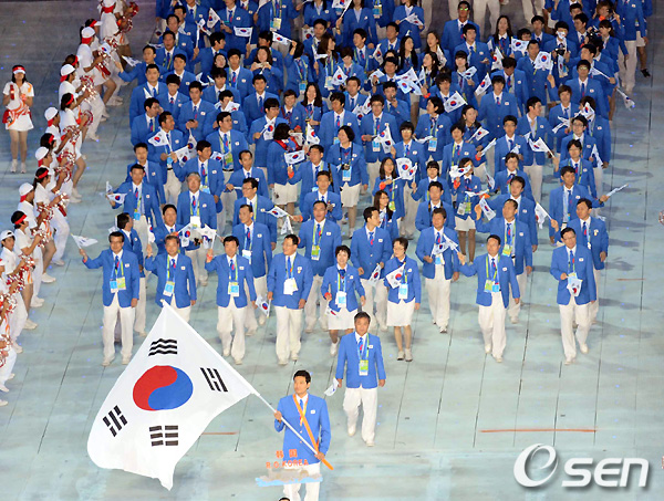 한국선수단이 기수 윤경신을 앞에워 16번째로 입장하고 있다. /ajyoung@osen.co.kr