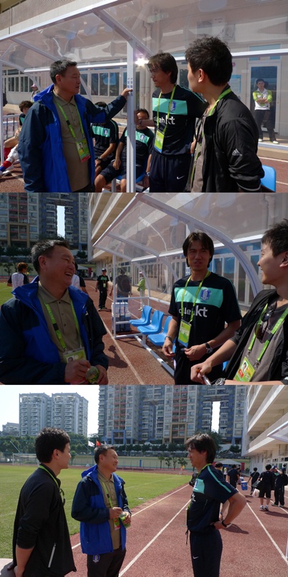 광저우 시내 얀지강 스타디움에서 진행된 공개훈련에 직접 찾아간 허 해설위원과 김정근 아나운서는 선수들을 방해하지 않도록 한쪽 측면에서 조용히 앉아 대표팀 전술에 대한 나름의 분석을 하면서 축구 중계를 위한 꼼꼼한 사전 점검을 했다.