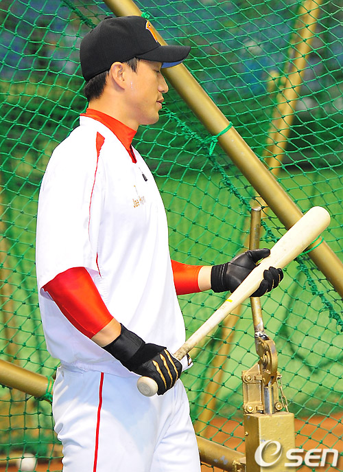 은퇴경기를 갖는 SK 김재현이 배트를 바라보고 있다./rumi@osen.co.kr