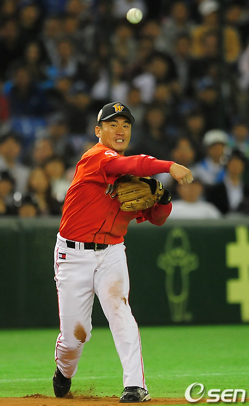 1회말 1사 1,3루 이구치의 3루 강습타구를 박정환이 잘 잡아 1루에 송구, 아웃을 시키고 있다. /rumi@osen.co.kr