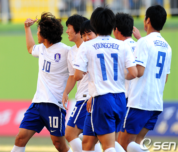 박주영 합류 후 요르단과의 경기서 대승을 거둔 한국이 13일 오후 중국 광저우 웨슈산 스타디움에서 아시안게임 축구 C조 예선 마지막 경기서 팔레스타인을 맞아 경기를 펼쳤다.